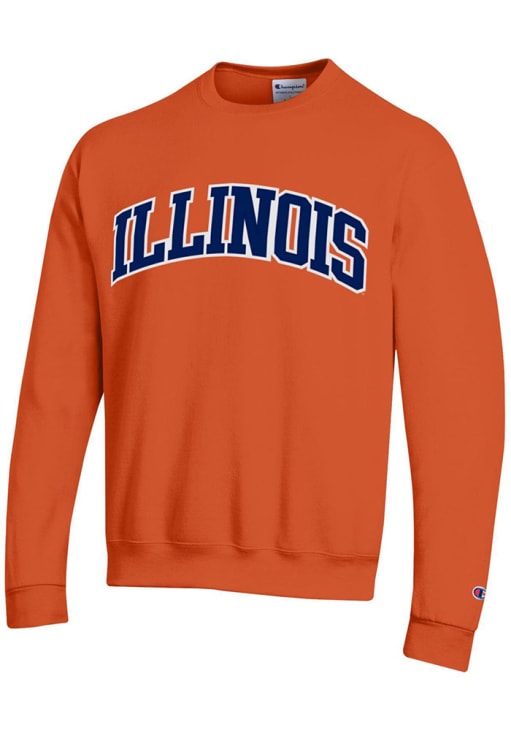 Mens Illinois Fighting Illini Orange Champion Arch Name Twill Crew Sweatshirt