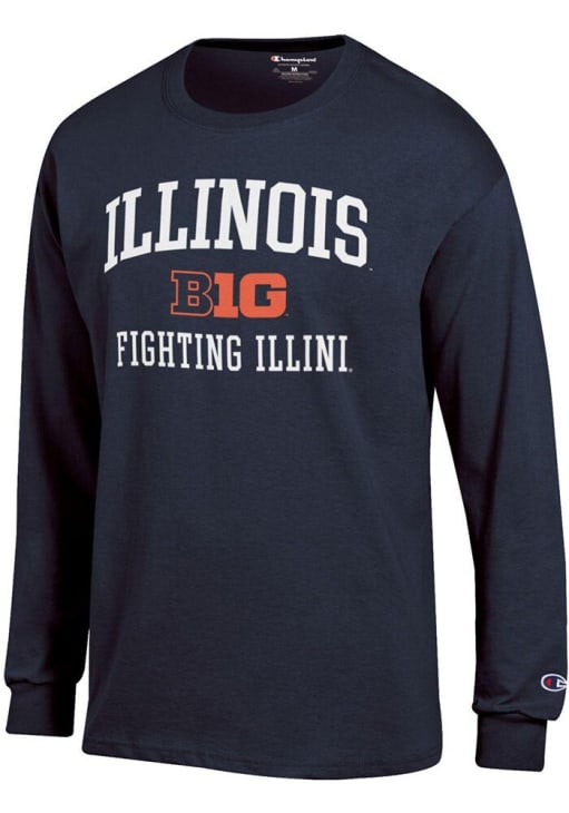 Show your Illinois Fighting Illini spirit in this Illinois Navy Blue T Shirt! This Illinois Big Ten Jersey Long Sleeve T Shirt makes a great layer for cooler nights cheering on the Fighting Illini. Featuring a printed team graphic on front chest, this Illinois Fighting Illini Long Sleeve Tee is an essential addition for every fan. Go, Illini, Go!