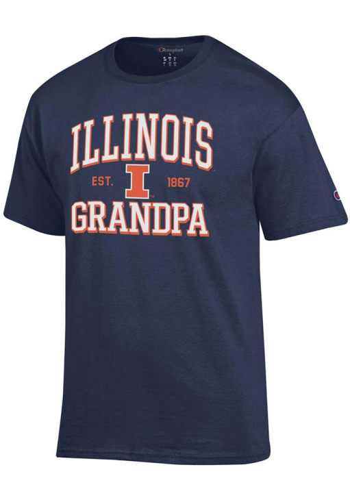 Display your team spirit with this remarkable Illinois Fighting Illini Champion Navy Blue Est. Date Grandpa Jersey Short Sleeve T Shirt! The Illinois Short Sleeve Tee showcases a printed team graphic that truly sets it apart. Stand out from the crowd and proudly declare your allegiance to the Fighting Illini with this exceptional Navy Blue Illinois T Shirt. Go, Illini, Go!