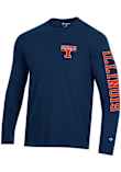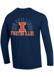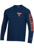 Show your Illinois Fighting Illini spirit in this Illinois Navy Blue T Shirt! This Illinois Stadium Three Hit Design Long Sleeve T Shirt makes a great layer for cooler nights cheering on the Fighting Illini. Featuring a screen print team logo on front left chest, left sleeve and back, this Illinois Fighting Illini Long Sleeve Tee is an essential addition for every fan. Go, Illini, Go!