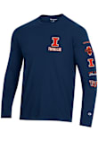 Show your Illinois Fighting Illini spirit in this Illinois Navy Blue T Shirt! This Illinois Stadium Three Hits Long Sleeve T Shirt makes a great layer for cooler nights cheering on the Fighting Illini. Featuring a screen print team graphic on front left chest, left sleeve and back, this Illinois Fighting Illini Long Sleeve Tee is an essential addition for every fan. Go, Illini, Go!
