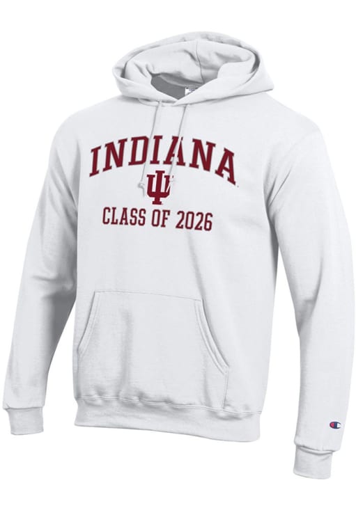 Mens Indiana Hoosiers White Champion Font Class of 2026 Powerblend Hooded Sweatshirt