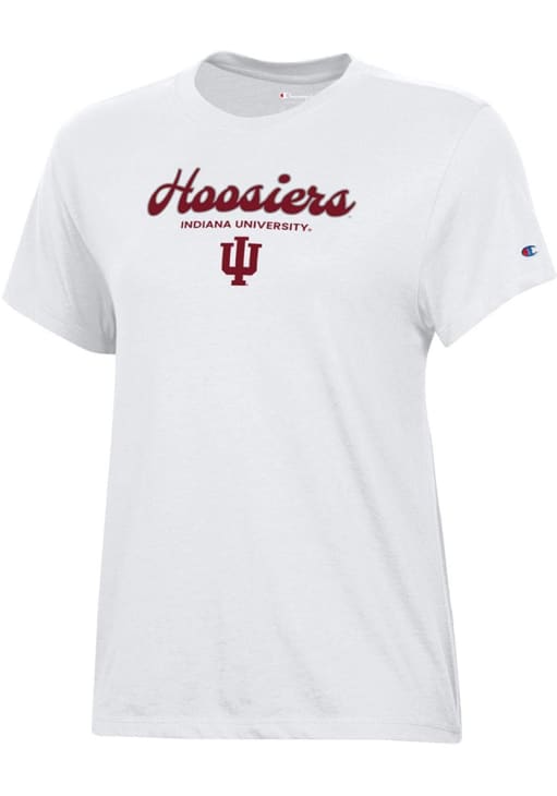 Display your team spirit with this remarkable Indiana Hoosiers White Cursive Core Short Sleeve T-Shirt! The Indiana Short Sleeve Tee showcases a center front printed team name and logo that truly sets it apart. Stand out from the crowd and proudly declare your allegiance to the Hoosiers with this exceptional White Indiana T-Shirt. Indiana, Our Indiana!