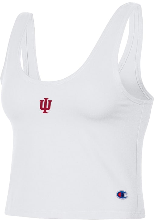Elevate your tailgating style with this Indiana Hoosiers Womens Tank Top. Stay fashionable and comfortable in the refreshing White Scoop Crop Sleeveless Shirt. Discover the enticing details of this Indiana Tank Top, showcasing a screen print team logo on center chest that's sure to impress.