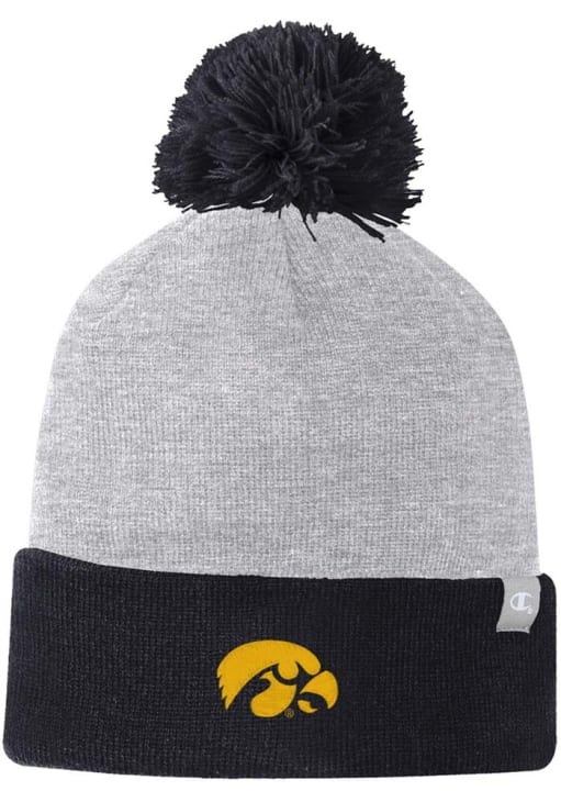 Size Chart for Iowa Hawkeyes Champion Two Color Cuffed Beanie Pom Mens Knit Hat - Grey