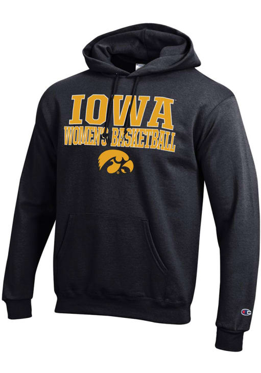 Mens Iowa Hawkeyes Black Champion Stacked Womens Basketball Hooded Sweatshirt