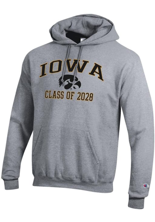 Mens Iowa Hawkeyes Grey Champion Font Class of 2028 Powerblend Hooded Sweatshirt