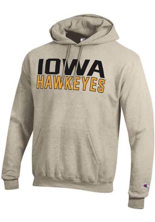 Mens Iowa Hawkeyes Oatmeal Champion Powerblend Hooded Sweatshirt