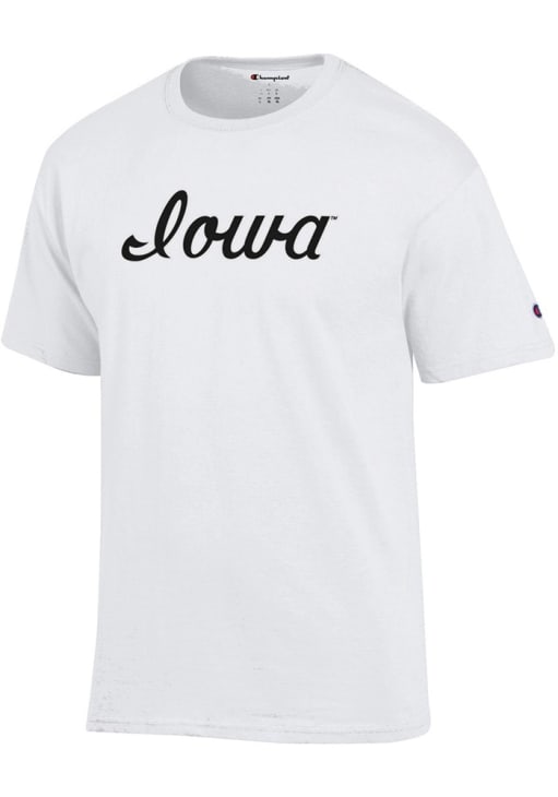 Iowa Hawkeyes White Champion Script Short Sleeve T Shirt