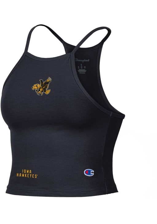 Elevate your tailgating style with this Iowa Hawkeyes Womens Tank Top. Stay fashionable and comfortable in the refreshing Black Halter Crop Sleeveless Shirt. Discover the enticing details of this Hawkeyes Tank Top, showcasing a screen print team logo on center chest that's sure to impress.
