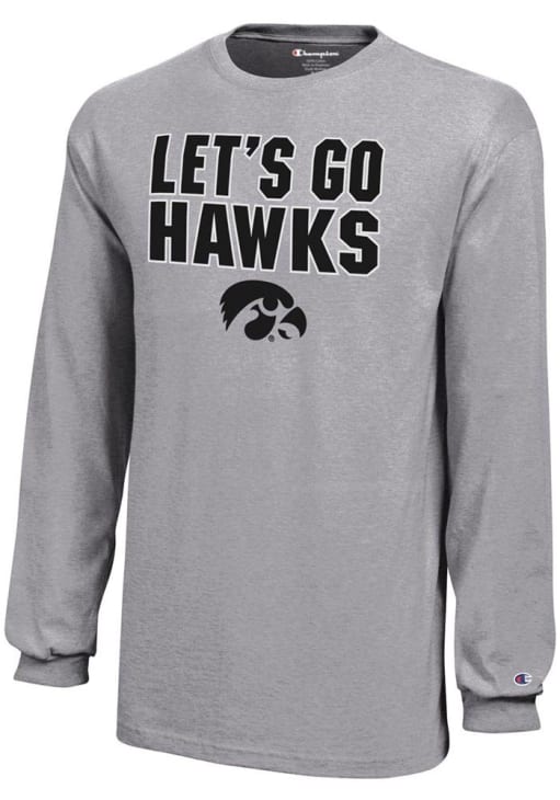 Size Chart for Youth Iowa Hawkeyes Grey Champion Slogan Long Sleeve T-Shirt