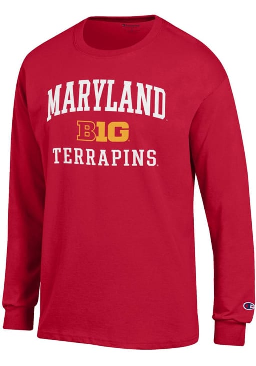 Show your Maryland Terrapins spirit in this Maryland Red T Shirt! This Maryland Big Ten Jersey Long Sleeve T Shirt makes a great layer for cooler nights cheering on the Terrapins. Featuring a printed team graphic on front chest, this Maryland Terrapins Long Sleeve Tee is an essential addition for every fan. Go Terps!