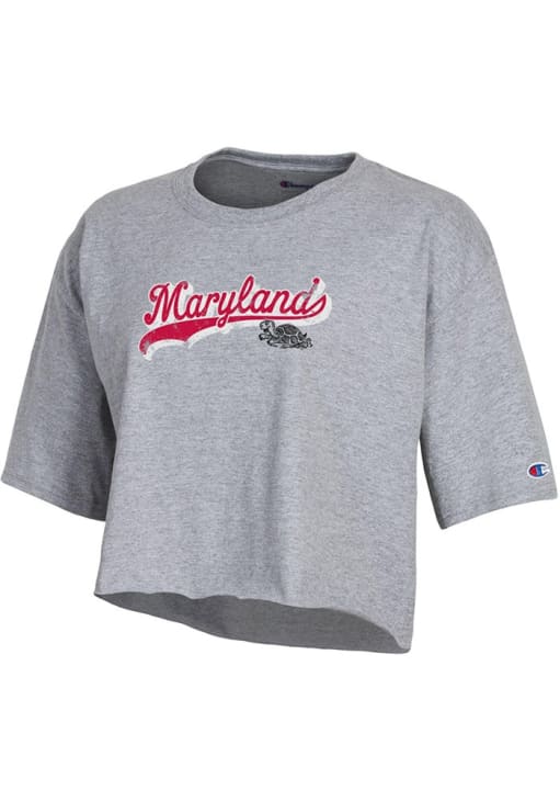 Display your team spirit with this remarkable Maryland Terrapins Grey Boyfriend Short Sleeve T-Shirt! The Maryland Short Sleeve Tee showcases a screen print team name and logo center chest that truly sets it apart. Stand out from the crowd and proudly declare your allegiance to the Terrapins with this exceptional Grey Maryland T-Shirt. Go Terps!