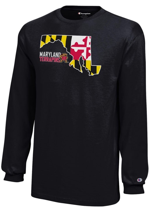Size Chart for Youth Maryland Terrapins Black Champion State Flag Long Sleeve T-Shirt