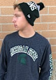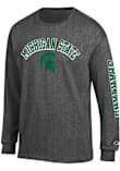 Show your Michigan State Spartans spirit in this MSU Charcoal T Shirt! This MSU Arch Mascot Long Sleeve T Shirt makes a great layer for cooler nights cheering on the Spartans. Featuring a screen print of arched "Michigan State" with helmet logo beneath and "Spartans" on sleeve, this Michigan State Spartans Long Sleeve Tee is an essential addition for every fan. Go Spartans!