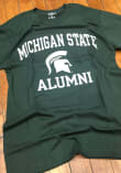 Display your team spirit with this remarkable Michigan State Spartans Champion Green Alumni Design Graphic Short Sleeve T Shirt! The MSU Short Sleeve Tee showcases a team mascot with Michigan State arched across the top and Alumni straight across the bottom that truly sets it apart. Stand out from the crowd and proudly declare your allegiance to the Spartans with this exceptional Green MSU T Shirt. Go Spartans!