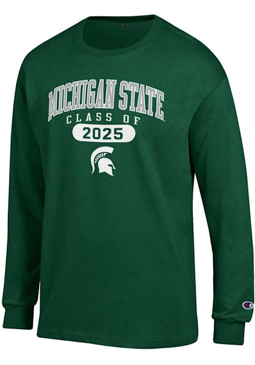 Show your Michigan State Spartans spirit in this MSU Green T Shirt! This MSU Class of 2025 Pill Jersey Long Sleeve T Shirt makes a great layer for cooler nights cheering on the Spartans. Featuring a screen print team graphic on front chest, this Michigan State Spartans Long Sleeve Tee is an essential addition for every fan. Go Spartans!