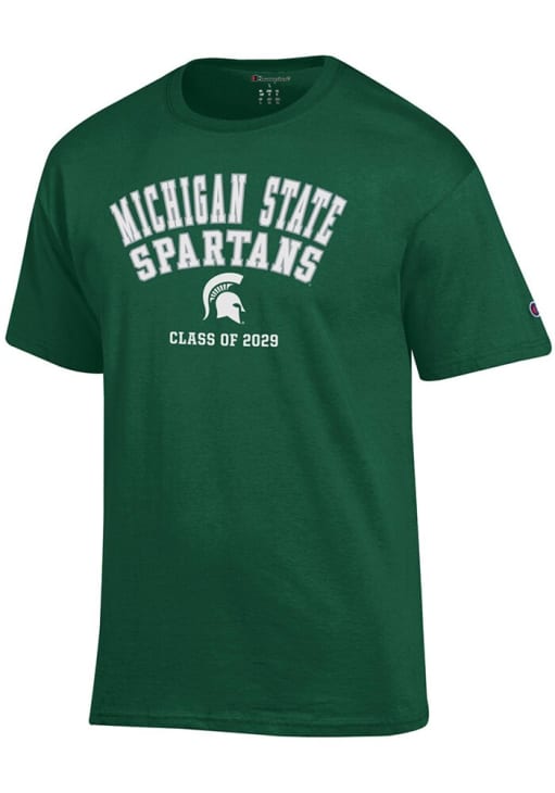 Display your team spirit with this remarkable Michigan State Spartans Green Class of 2029 Short Sleeve T Shirt! The MSU Short Sleeve Tee showcases a screen printed team name and mascot that truly sets it apart. Stand out from the crowd and proudly declare your allegiance to the Spartans with this exceptional Green MSU T Shirt. Go Spartans!