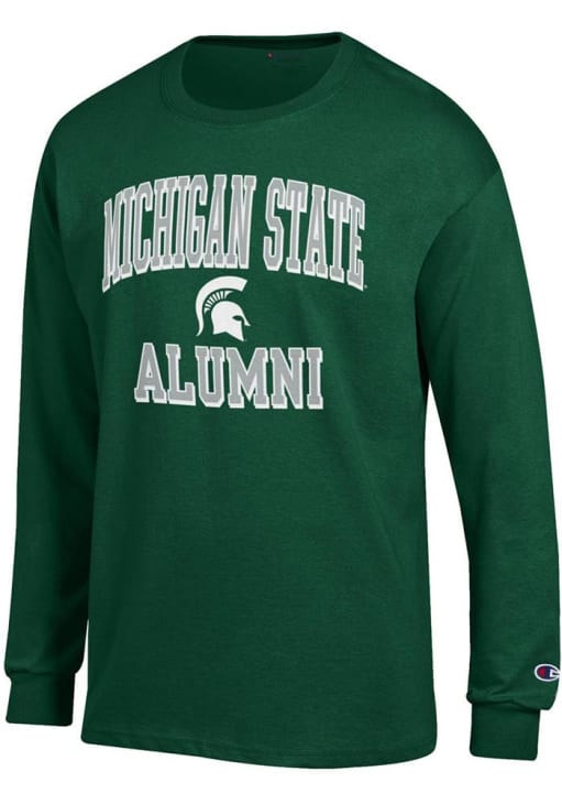 Show your Michigan State Spartans spirit in this MSU Green T Shirt! This MSU Est Date Alumni Jersey Long Sleeve T Shirt makes a great layer for cooler nights cheering on the Spartans. Featuring a printed team graphic on front chest, this Michigan State Spartans Long Sleeve Tee is an essential addition for every fan. Go Spartans!