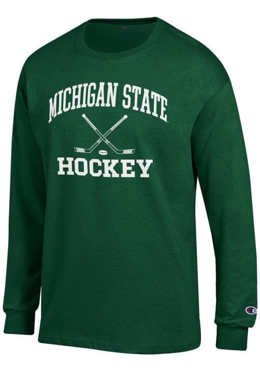 Show your Michigan State Spartans spirit in this MSU Green T Shirt! This MSU Hockey Jersey Long Sleeve T Shirt makes a great layer for cooler nights cheering on the Spartans. Featuring a printed team graphic on front chest, this Michigan State Spartans Long Sleeve Tee is an essential addition for every fan. Go Spartans!