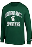 Show your Michigan State Spartans spirit in this MSU Green T Shirt! This MSU No1 Design Long Sleeve T Shirt makes a great layer for cooler nights cheering on the Spartans. Featuring a screen print of arched "Michigan State" with helmet logo and "Spartans" beneath, this Michigan State Spartans Long Sleeve Tee is an essential addition for every fan. Go Spartans!