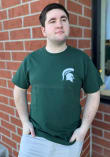 Display your team spirit with this remarkable Michigan State Spartans Green Spartan Logo Short Sleeve T Shirt! The MSU Short Sleeve Tee showcases a screen print of small Spartan helmet on left chest that truly sets it apart. Stand out from the crowd and proudly declare your allegiance to the Spartans with this exceptional Green MSU T Shirt. Go Spartans!