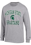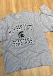 Show your Michigan State Spartans spirit in this MSU Grey T Shirt! This MSU Number One Long Sleeve T Shirt makes a great layer for cooler nights cheering on the Spartans. Featuring a screen print of arched "Michigan State" with helmet logo and "Spartans" beneath, this Michigan State Spartans Long Sleeve Tee is an essential addition for every fan. Go Spartans!