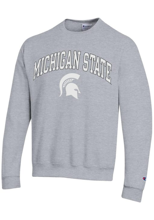 Gear up for the ultimate game day experience with this remarkable Michigan State SpartansMens Grey Arch Mascot Crew Sweatshirt! Designed with the true fan in mind, this Spartans Long Sleeve Crew Sweatshirt features a screen print arch mascot on front chest. Stay warm and comfortable with this Mens MSU Spartans Crew Sweatshirt.