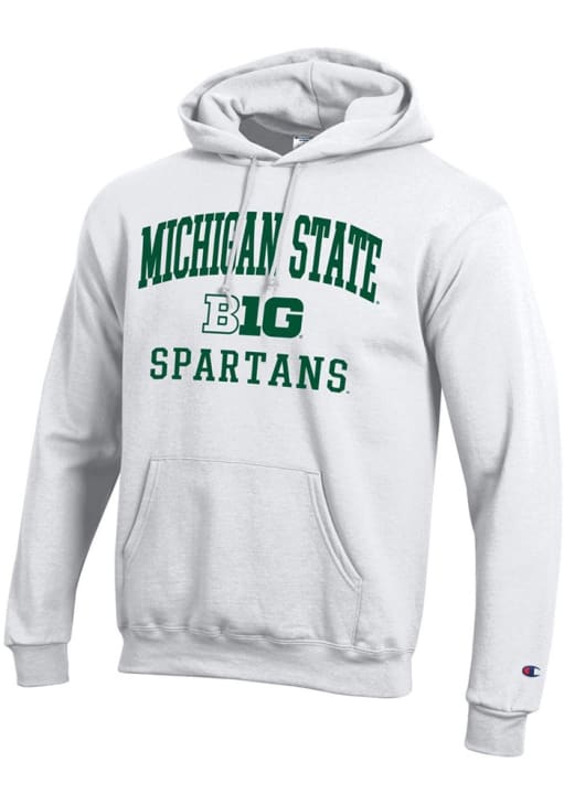 Mens Michigan State Spartans White Champion Big Ten Powerblend Hooded Sweatshirt