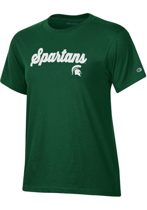 Display your team spirit with this remarkable Michigan State Spartans Green Glitter Short Sleeve T-Shirt! The MSU Short Sleeve Tee showcases a screen print team name and logo on center chest that truly sets it apart. Stand out from the crowd and proudly declare your allegiance to the Spartans with this exceptional Green MSU T-Shirt. Go Spartans!
