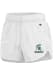 Take your workout to the next level in these Michigan State Spartans Womens White Curved Shorts! These MSU Shorts are great for any Spartans fan who wants to show off their team spirit during their fitness routine. These Michigan State Spartans Shorts feature a screenprint team logo on left hem.