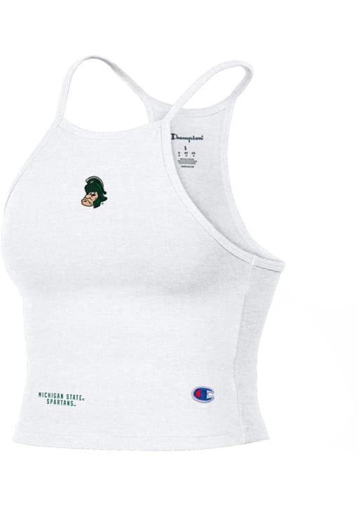 Elevate your tailgating style with this Michigan State Spartans Womens Tank Top. Stay fashionable and comfortable in the refreshing White Halter Crop Sleeveless Shirt. Discover the enticing details of this MSU Tank Top, showcasing a screen print team logo on center chest that's sure to impress.