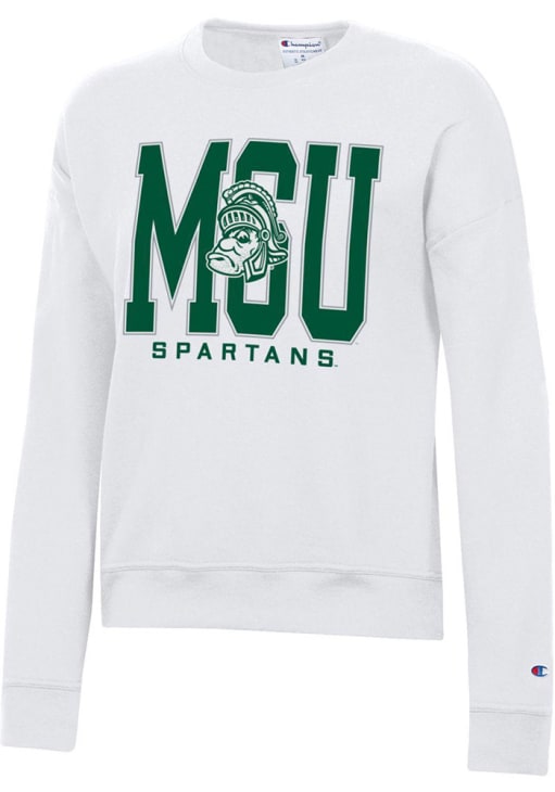 Gear up for the ultimate game day experience with this remarkable Michigan State SpartansWomens White Powerblend Crew Sweatshirt! Designed with the true fan in mind, this Spartans Long Sleeve Sweatshirt features a screenprint team name on center chest. Stay warm and comfortable with this Womens MSU Spartans Crew Sweatshirt.