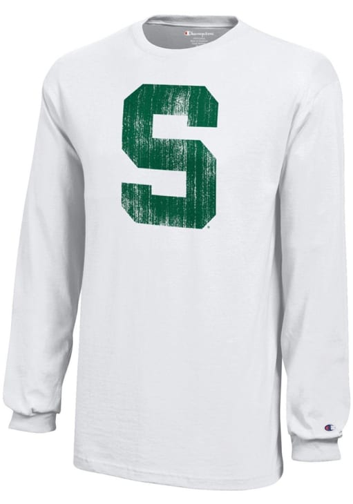 Size Chart for Youth Michigan State Spartans White Champion Distressed Logo Long Sleeve T-Shirt
