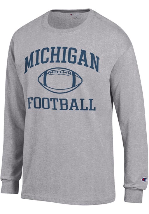 Show your Michigan Wolverines spirit in this Michigan Grey T Shirt! This Michigan Football Football Jersey Long Sleeve T Shirt makes a great layer for cooler nights cheering on the Wolverines. Featuring a printed team graphic on front chest, this Michigan Wolverines Long Sleeve Tee is an essential addition for every fan. Go Michigan!