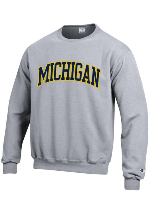 Mens Michigan Wolverines Grey Champion Arch Logo Crew Sweatshirt