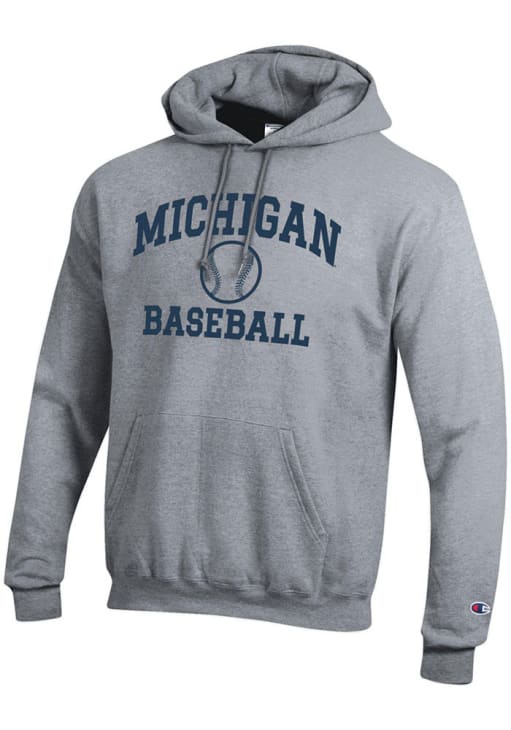 Mens Michigan Wolverines Grey Champion Baseball Powerblend Hooded Sweatshirt
