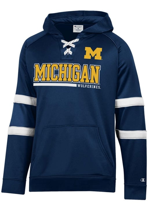 Make a bold statement in this Michigan Wolverines Blue Stadium Raglan Hockey Lace Up Long Sleeve Hood! This Michigan Long Sleeve Hoodie features a screen print team graphic on front chest. Go Michigan!