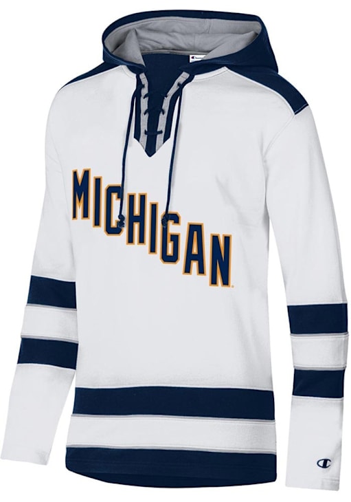 Mens Michigan Wolverines White Champion Super Fan Hockey Hooded Sweatshirt