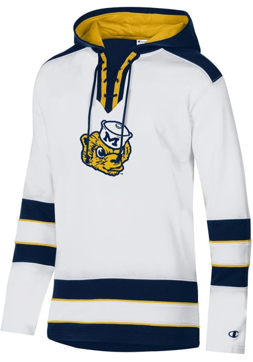 Mens Michigan Wolverines White Champion Super Fan Hockey Hooded Sweatshirt