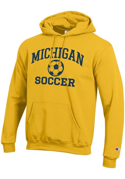Mens Michigan Wolverines Yellow Champion Soccer Powerblend Hooded Sweatshirt