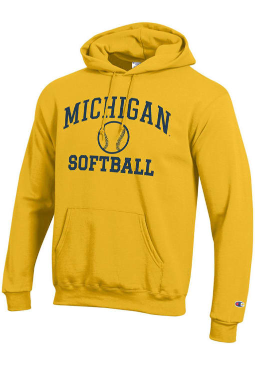 Mens Michigan Wolverines Yellow Champion Softball Powerblend Hooded Sweatshirt