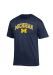 Michigan Wolverines Blue Champion Arch Mascot Design Short Sleeve T Shirt