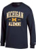 Show your Michigan Wolverines spirit in this Michigan Navy Blue T Shirt! This Michigan Est Alumni Jersey Long Sleeve T Shirt makes a great layer for cooler nights cheering on the Wolverines. Featuring a printed team graphic on front chest, this Michigan Wolverines Long Sleeve Tee is an essential addition for every fan. Go Michigan!