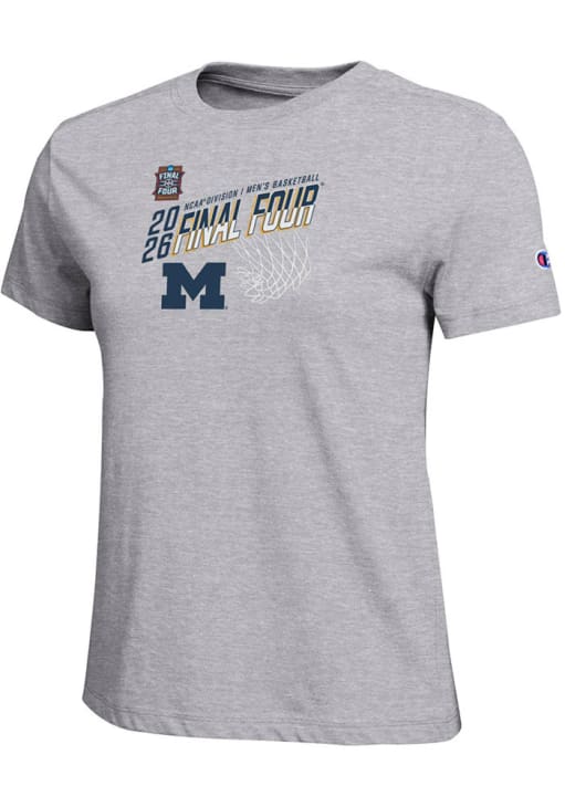 Display your team spirit with this remarkable Michigan Wolverines Grey MBB Final Four 2026 Core Short Sleeve T-Shirt! The Michigan Short Sleeve Tee showcases a center front printed team name and logo that truly sets it apart. Stand out from the crowd and proudly declare your allegiance to the Wolverines with this exceptional Grey Michigan T-Shirt. Go Michigan!