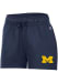 Take your workout to the next level in these Michigan Wolverines Womens Blue Powerblend Shorts! These Michigan Shorts are great for any Wolverines fan who wants to show off their team spirit during their fitness routine. These Michigan Wolverines Shorts feature a screenprint team name on left thigh.