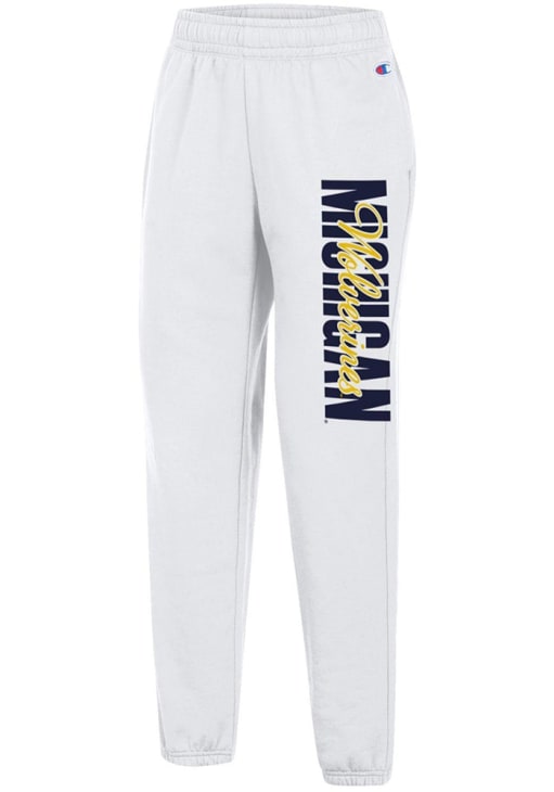 Cozy up in these Michigan Wolverines Womens White Powerblend Sweatpants! Whether you're lounging at home or cheering at the game, these Michigan Wolverines Sweats are a great way to show your Wolverines support in comfort. These Michigan Wolverines Sweatpants feature a screenprint team logo on left thigh.