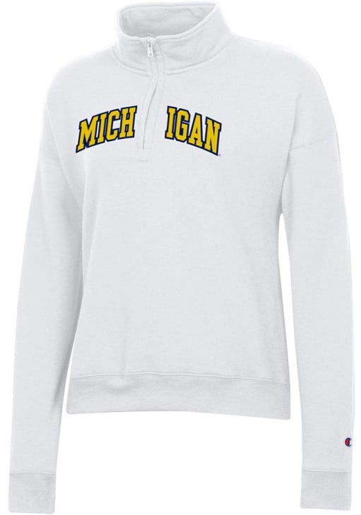 Embrace the warmth and showcase your Wolverines pride with our Michigan Wolverines Long Sleeve Qtr Zip. This Womens White Twill Long Sleeve Pullover offers a applique team name on center chest for the perfect combination of comfort and style. Elevate your everyday look with this must-have Michigan Wolverines Long Sleeve Qtr Zip.