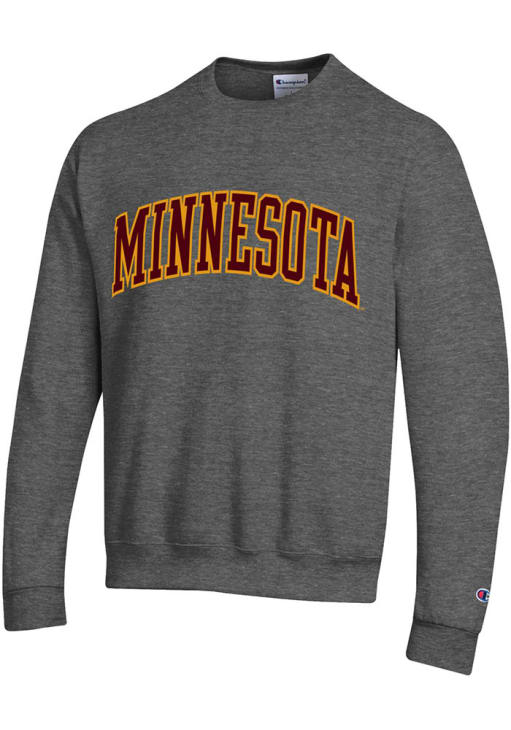 Mens Minnesota Golden Gophers Charcoal Champion Arch Name Crew Sweatshirt
