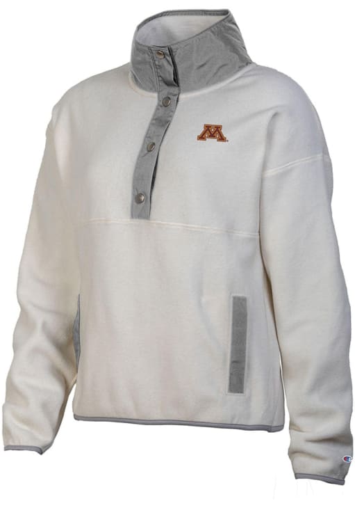 Embrace the warmth and showcase your Golden Gophers pride with our Minnesota Golden Gophers Long Sleeve Qtr Zip. This Womens Natural Polar Long Sleeve Pullover offers a embroideried team lego left chest for the perfect combination of comfort and style. Elevate your everyday look with this must-have Minnesota Golden Gophers Long Sleeve Qtr Zip.